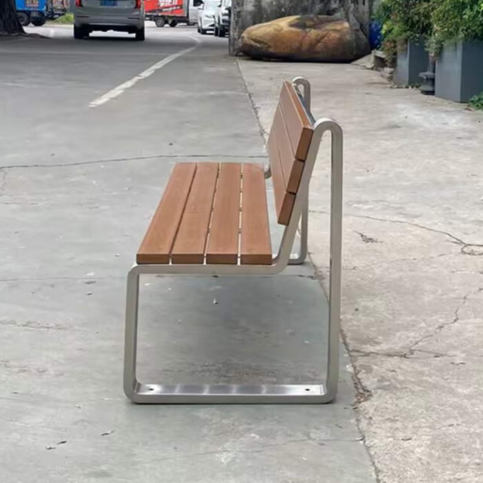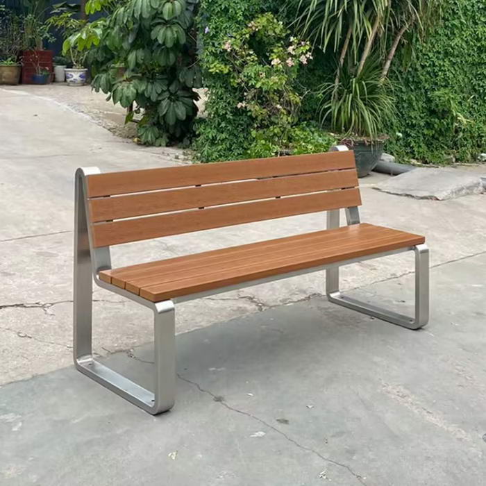 Model No. : Modern Stainless Steel Outdoor Bench with Wooden Seat – Elegant Garden Bench for Parks, Hotels & Public Spaces – Durable & Weather-Resistant