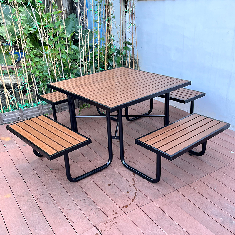 Model No. : Wholesale Price Aluminum Metal Picnic Table Legs Square Table Set WPC Wood Top Seating Outdoor Korean BBQ Table for Urban